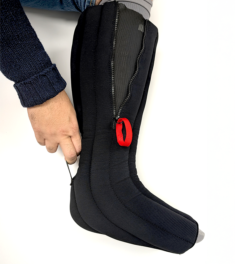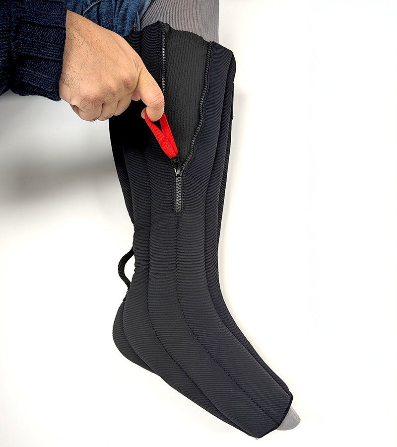 Ease of use: Integrated zipper and heel tab facilitate independent application and removal, improving adherence.