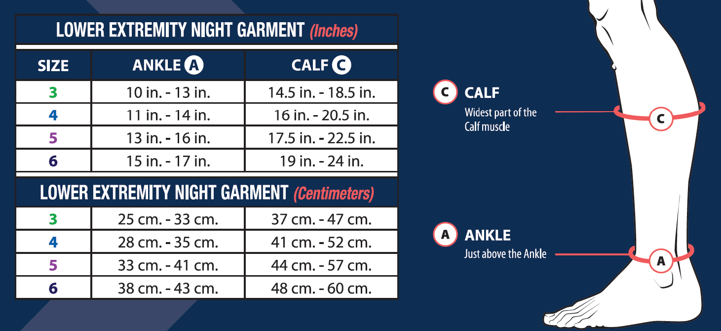 Finding the right size for your EXTREMIT-EASE Night Garment is as simple as taking two measurements.